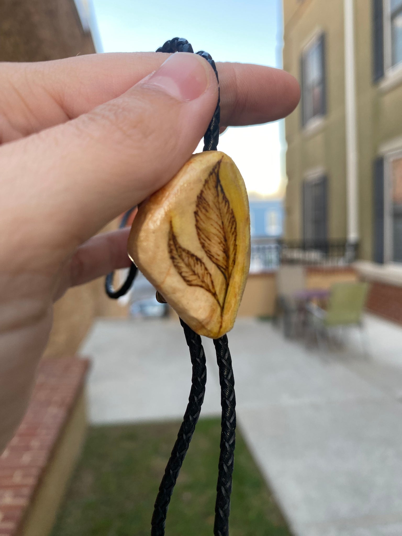 Handmade Bolo Tie—Leaf Plant Woodburned Design