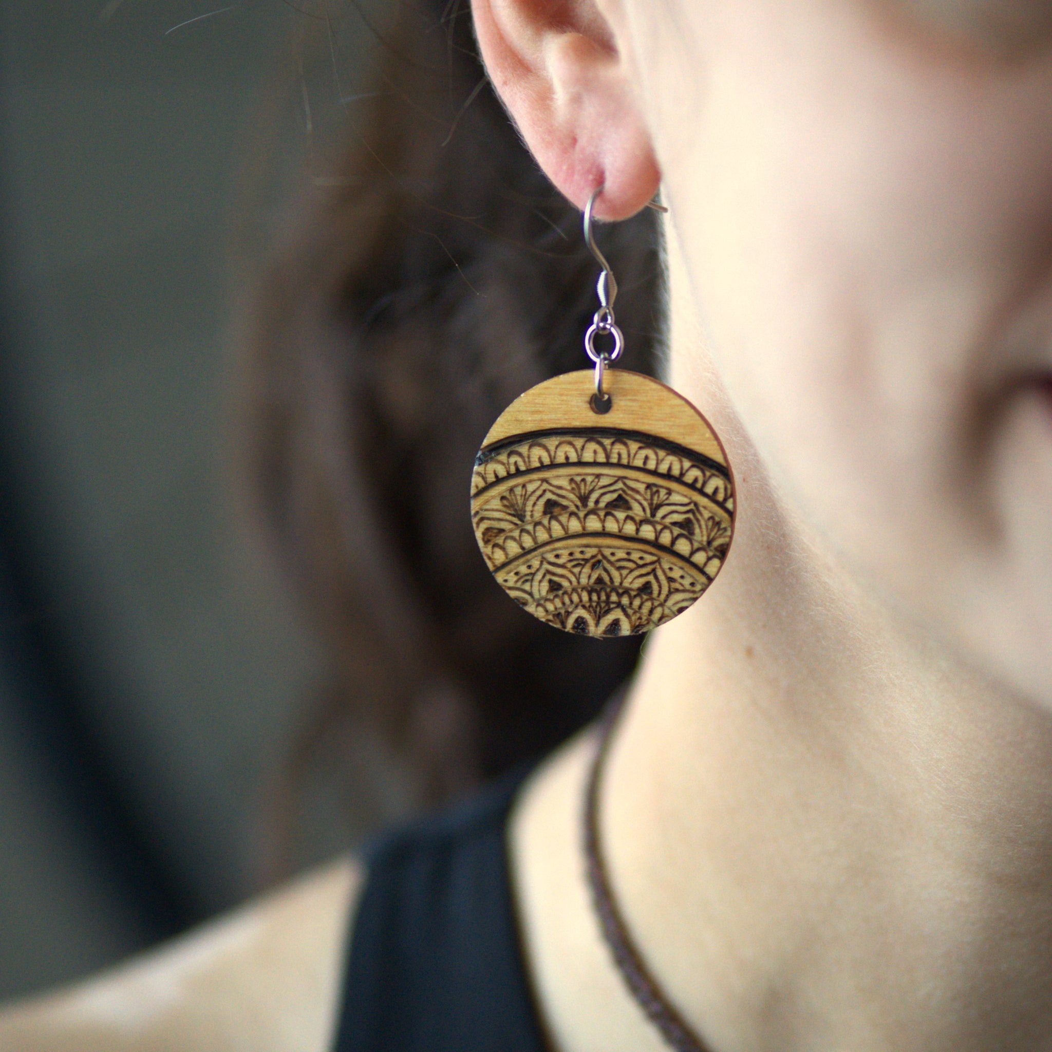 Handmade Woodburned Earrings – Rustic Boho Lightweight Jewelry